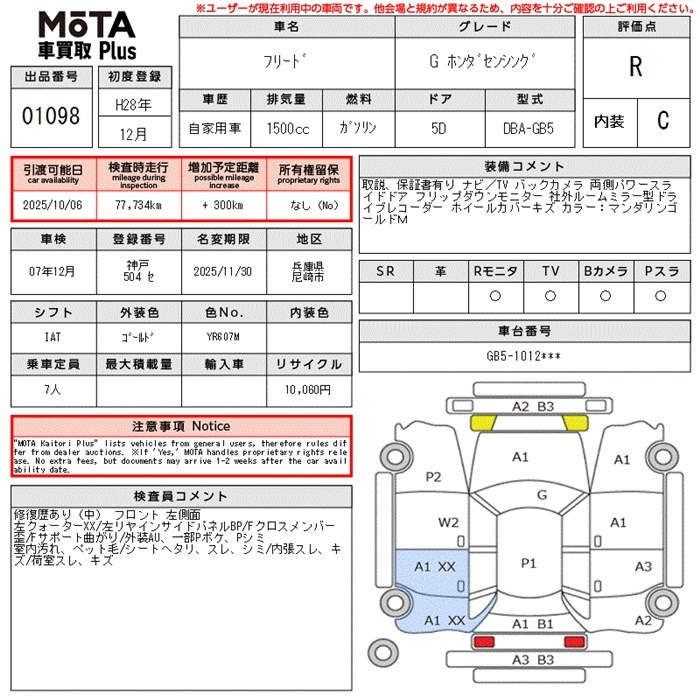 Honda Freed 2016 года