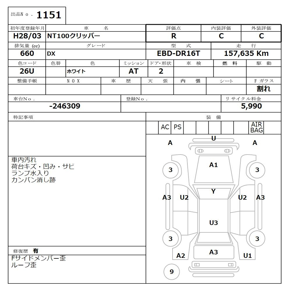 Ремонт/Покраска (очень заметные, должно быть перекрашено)