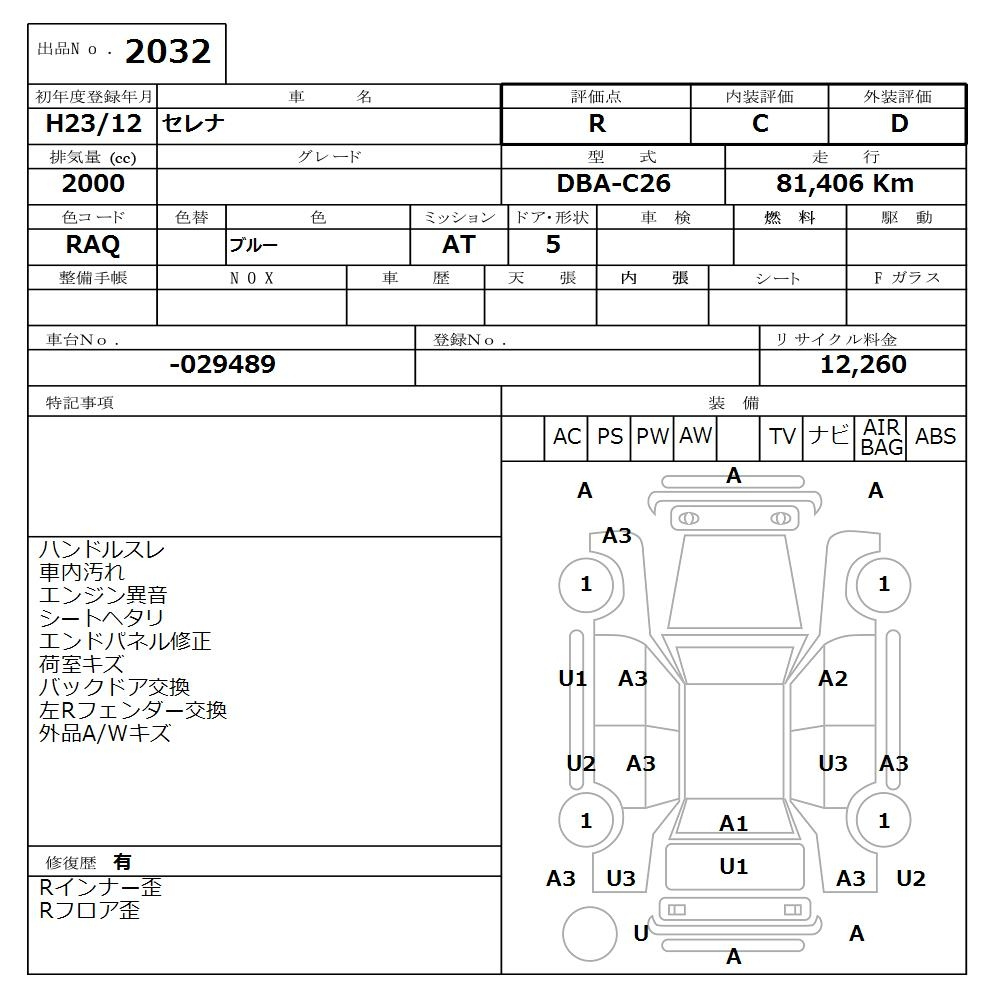 Ремонт/Покраска (очень заметные, должно быть перекрашено)