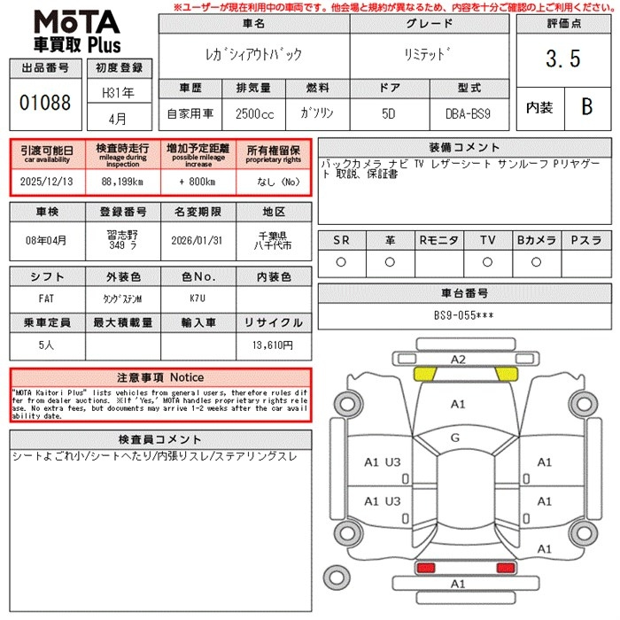 Subaru Legacy outback, 2019