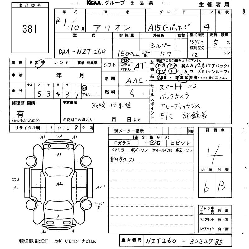 Другие варианты Toyota Allion
