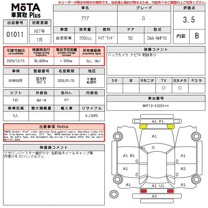 Toyota Aqua, 2015