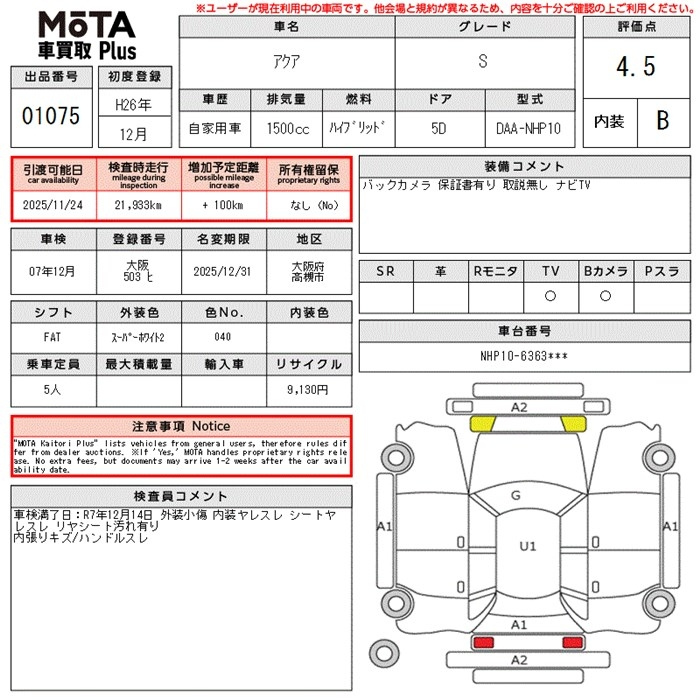 Toyota Aqua, 2014