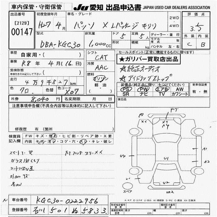 Toyota Passo 2015 года