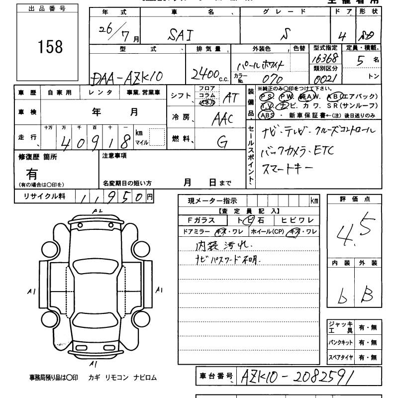 Toyota Sai, 2014