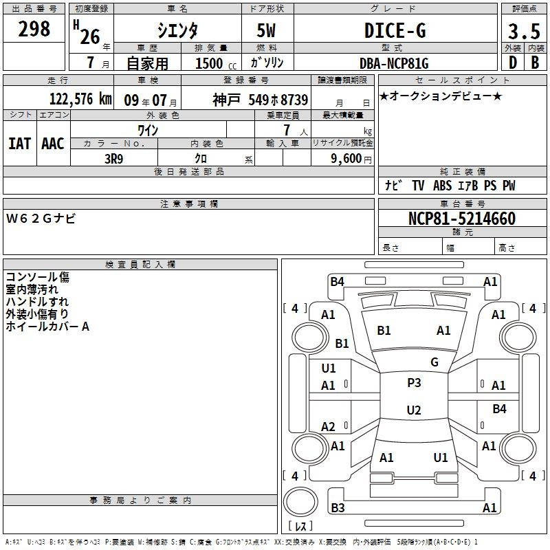 Toyota Sienta 2014 года
