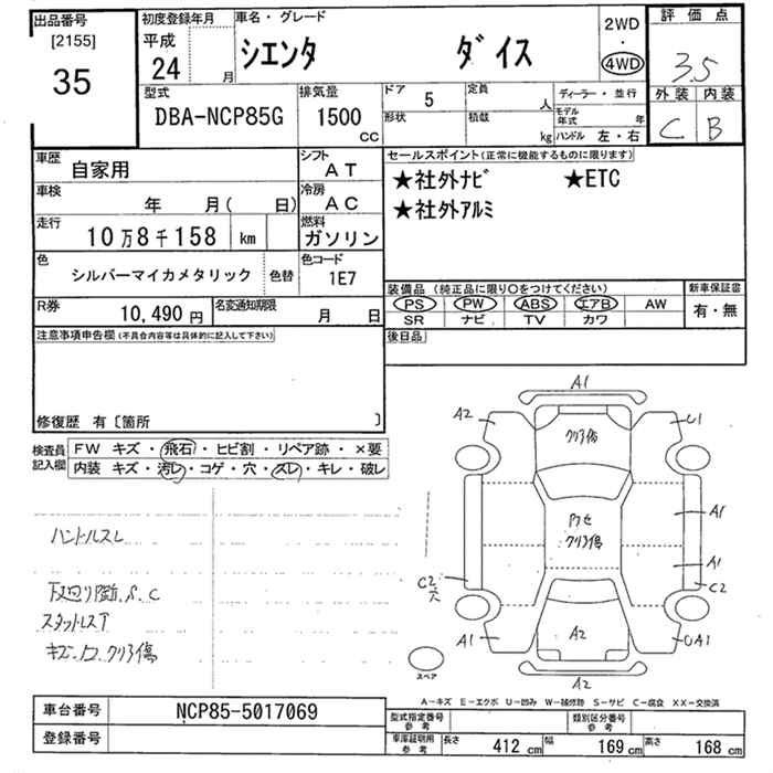 Toyota Sienta 2012 года