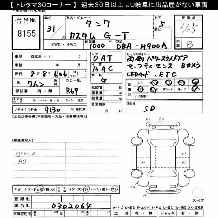 Toyota Tank 2019 года